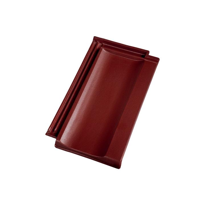 Dachówka ceramiczna w kolorze czarnej angoby o jednym szerokim wyżłobieniu nadającym połaci dachu spokojnego i harmonijnego charakteru.