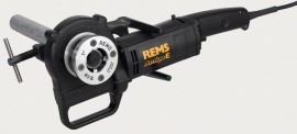Zalety systemu-Jeden rodzaj małych, zwartych, szybkowymiennych głowic gwintujących i jeden rodzaj noży gwintujących które pasują do REMS Mini-Amigo, REMS Amigo, REMS Amigo 2, REMS Amigo 2 Compact i REMS eva. Ułatwia to utrzymanie taniego zaplecza narzędziowego oraz wyklucza pomyłkę przy pracy. Uchwyt prowadzący-Stabilny, łatwy w użyciu uchwyt prowadzący do mocowania dla momentów obrotowych w obydwu kierunkach obrotów. Pewne mocowanie przez skośne ułożenie trzpienia unieruchamiającego ze wzmacniającym się dociskiem. Wyjątkowo łatwe mocowanie gwintownicy oraz rury w uchwycie. Konstrukcja-Zwarta, mocna sprawdzająca się na budowie, wszędzie się mieści. Również bez imadła. Smukły kształt, ułatwia pracę w trudno dostępnych miejscach. Napęd tylko 3,5 kg. Dobrze wyważona, dlatego można ją obsługiwać również jedną ręką. Doskonałe pewne mocowanie głowic szybkowymiennych. Napęd-Stabilna, zwarta, bezobsługowa przekładnia. Mocny, odporny 950 W silnik uniwersalny z 30% zwiększeniem mocy poprzez automatyczne przestawienie szczotek przy zmianie kierunku obrotów. Pobór szczytowy do 1500 W. Szybkie nacinanie gwintów 35–27 1/min. Bezpieczny włącznik impulsowy. Głowice szybkowymienne- Niezawodna technika, wysokiej jakości materiał i precyzyjna obróbka głowicy, noży gwintujących i pokrywy w celu uzyskania zwartej całości gwarantują bardzo łatwe wejście w materiał i gwintowanie. Noże nie wrzynają się w materiał. Długie precyzyjne prowadzenie rury zapewnia jej dokładnie centryczne ułożenie. Duże, prowadzące na zewnątrz otwory, zapewniają swobodne odprowadzenie wiórów, a przez to gwarantują czysty gwint. Noże gwintujące Niezawodne, niezniszczalne, wysokiej jakości noże gwintujące REMS z optymalną geometrią, gwarantują bardzo łatwe wejście w materiał, lekkie gwintowanie i czyste gwinty. Wykonane są z odpornej na obciążenia, specjalnie hartowanej stali zapewniającej wyjątkowo długą ich żywotność.