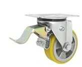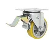koła aluminiowo-poliuretanowe w obudowie skrętnej z hamulcem firmy ZABI składają się z koła z aluminiowego korpusu z trwale połączonym bieżnikiem poliuretanowym oraz ze stabilnej stalowej obudowy tłoczonej z płytką mocującą oraz hamulcem mechanicznym. Koło występujące w tej obudowie osadzone jest na tulejce, montowane jest z kielichem obudowy za pomocą śruby i nakrętki. Precyzyjne wykonanie obudowy skrętnej z płytką mocującą umożliwia obracanie zestawu skrętnego w pionie oraz dowolne manewry maszynami, środkami transportowymi itd. Specjalna budowa pozwala na łatwe skręcanie zestawem bez dodatkowych sił i środków pomocniczych oraz zachowanie stabilnego kierunku ruchu w linii prostej. Obudowa skrętna wyposażona jest dodatkowo w hamulec mechaniczny za pomocą którego możliwa jest blokada ruchu obrotowego koła, ruchu obrotowego głowicy skrętnej a także blokada kierunku.