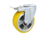Koła aluminiowo-poliuretanowe w obudowie z otworem i hamulcem firmy ZABI składają się z koła aluminiowego korpusu z trwale połączonym bieżnikiem poliuretanowym oraz ze stabilnej stalowej obudowy tłoczonej z centralnym otworem na śrubę mocującą wraz z hamulcem mechanicznym. Koło występujące w tej obudowie osadzone jest na tulejce, montowane jest z kielichem obudowy za pomocą śruby i nakrętki. Precyzyjne wykonanie obudowy skrętnej umożliwia obracanie zestawu skrętnego w pionie oraz dowolne manewry maszynami, środkami transportowymi itd. Specjalna budowa pozwala na łatwe skręcanie zestawem bez dodatkowych sił i środków pomocniczych oraz zachowanie stabilnego kierunku ruchu w linii prostej.