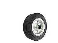 Koła metalowo – gumowe w obudowach skrętnych tłoczonych z hamulcem jest bardzo powszechnie stosowane.