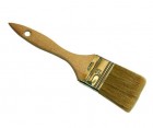 Pędzel półangielski z drewnianym trzonkiem, jasna szczecina. Przeznaczony do prostych prac lakierniczych.