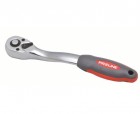 Przełącznik klawiszowy. 72 precyzyjne zęby. Rękojeść odgięta z nasadką z dwuskładnikowego tworzywa, z wtopionymi elementami gumowymi. Kwadrat 1/2". Długość : 250 mm