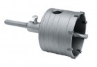 Otwornica przeznaczone do pracy udarowej - młotowiertarki z uchwytem SDS Plus. Idealna do wykonywania otworów pod puszki elektryczne o średnicy 65mm. Zastosowanie do użytku zawodowego w serwisach i firmach budowlanych. Dostosowane do długotrwałej pracy w największych obciążeniach. Wiercenie w betonie, pełnej cegle, pustakach. Koronka o średnicy 65 mm i wysokości 50 mm ze stali stopowej Cr40. W cylindrze znajduje się otwór technologiczny do wyrzucania urobku. Koronka wyposażona w zęby tnące z węglika TCT YG-11C w ilości 6 szt. Wiertło centrujące z węglikiem spiekanym 6 mm. Uchwyt SDS Plus. Adapter mocowany jest do koronki za pomoca gwintu M16.